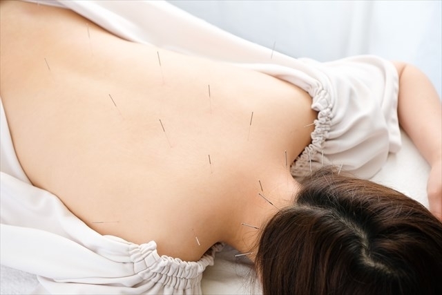 ・肩甲骨まわりの筋緊張や神経痛を緩和するための鍼治療を受けている